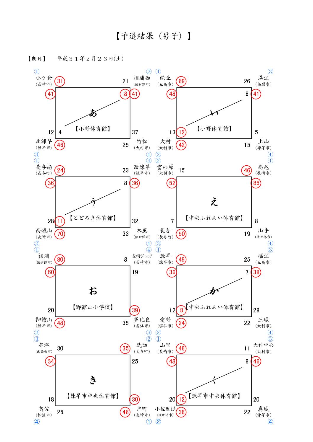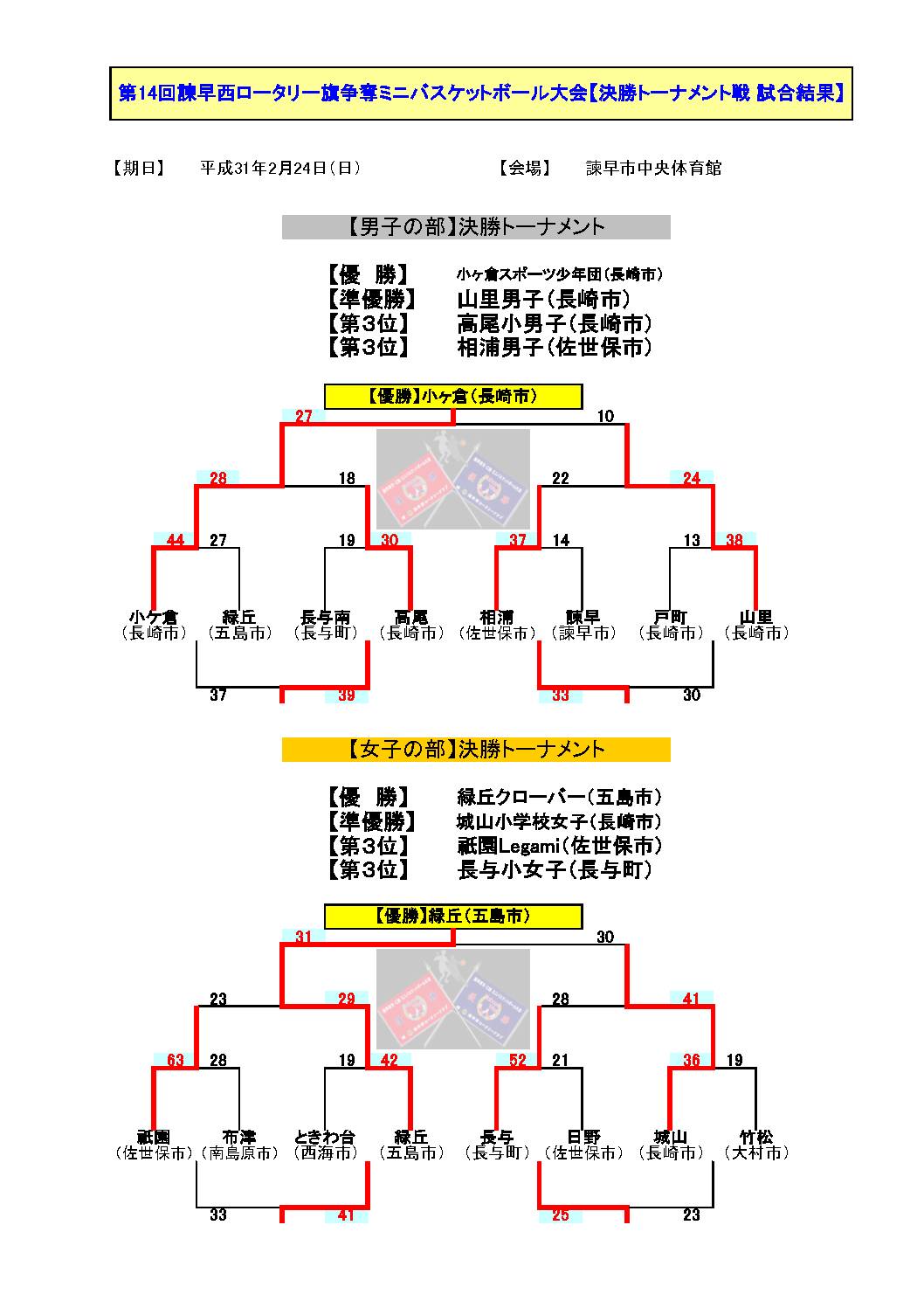 決勝トーナメント戦 諫早市中央体育館 2月24日(日)